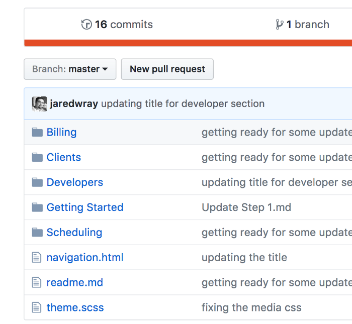 The first step is to see how we did this. Since we use GitHub for our knowledge base repository, it made sense to extend the configuration for skinning there. Here is what the Fons repository looks like with the style.css and navigation.html file in the root.